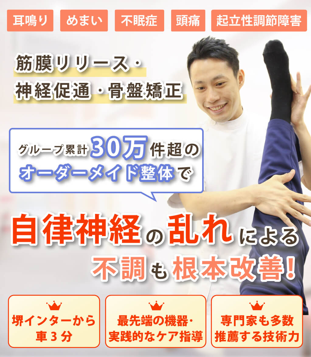 自律神経失調症、耳鳴り、めまい、不眠症、頭痛、腰痛などの自律神経の乱れからくる身体の不調の施術経験が豊富な整体院です。施術して終わりではなく、その後の自宅でできるセルフストレッチや生活習慣の指導もいたします。